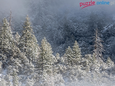 Góry, Śnieg, Zima, Drzewa, Mgła, Las