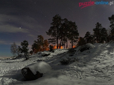 Puzzle Drzewa, Zima, Las, Noc