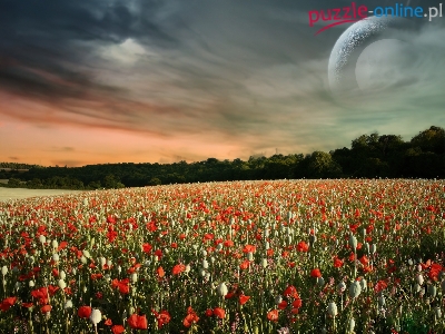 Puzzle Drzewa, Pole, Mak, Niebo