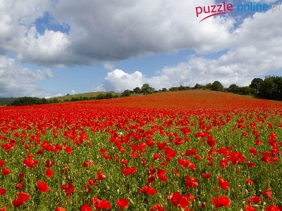Puzzle Drzewa, Łąka, Maki, Chmury