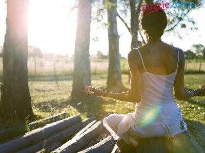 Puzzle Drzewa, Kobieta, Medytacja, Słońce