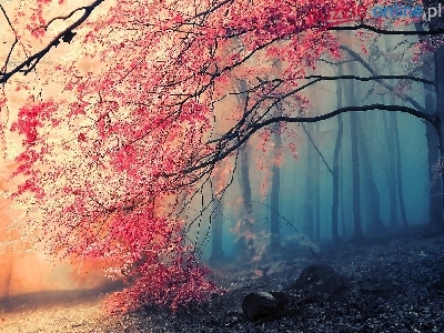 Drzewa, Las, Mgła, Jesień