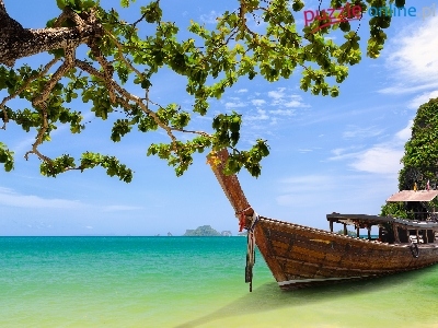 Puzzle Łódź, Morze, Drzewa, Karaiby