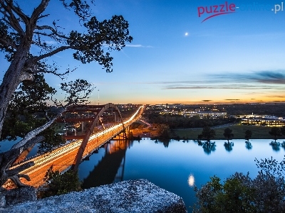 Puzzle Drzewa, Rzeka, Most, Niebo