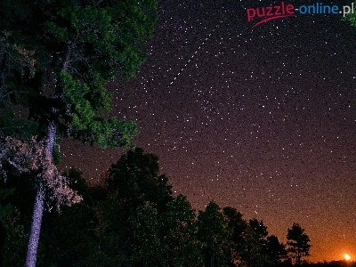 Drzewa, Gwiazda, Noc, Niebo, SpadajÄ…ca
