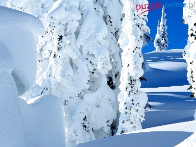 Puzzle Drzewa, Zima, Śnieg , Niebo