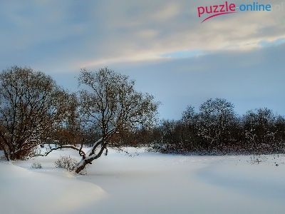 Puzzle Drzewa, Zima, Śnieg, Niebo