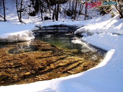Puzzle Drzewa, Zima, Śnieg, Rzeka
