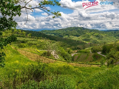 Drzewa, Pola, Wzgórza, Winnice, Chmury, Vogtsburg, Niemcy, Las, Kaiserstuhl