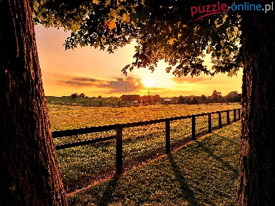 Drzewa, Łąka, Słońca, Pole, Ogrodzenie, Promienie