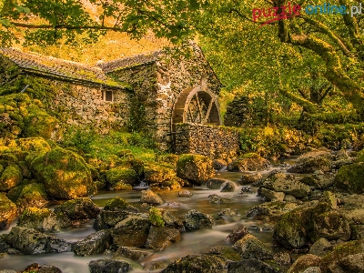 Młyn wodny, Rzeka, Drzewa, Kamienie, Omszałe