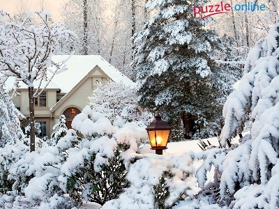 Puzzle Drzewa, Dom, Ośnieżone, Zima