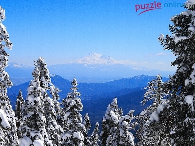 Puzzle Drzewa, Góry, Ośnieżone, Zima