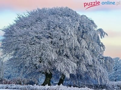 Puzzle Drzewa, Pola, Ośnieżone, Zima