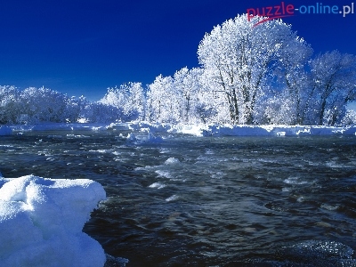 Puzzle Drzewa, Rzeka, Ośnieżone, Zima