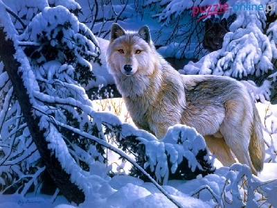 Puzzle Drzewa, Wilk, Ośnieżone, Zima