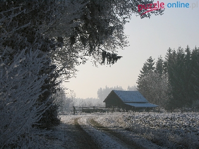 Zima, Drzewa, Oszronione, Szopa, Droga