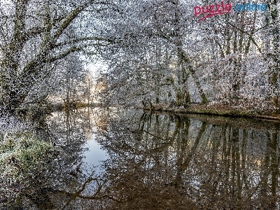 Puzzle Drzewa, Rzeka, Oszronione, Odbicie