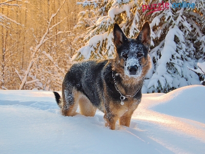 Puzzle Śnieg, Owczarek niemiecki, Drzewa, Zima