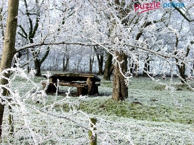 Puzzle Ławka, Park, Drzewa, Szadź