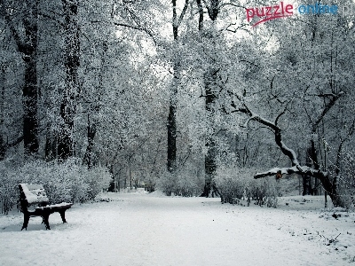 Puzzle Ławka, Park, Drzewa, Zima