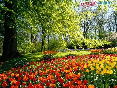 Puzzle Drzewa, Holandia, Park, Tulipany