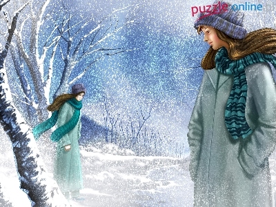 Drzewa, Grafika, Kobiety, Park, Zima
