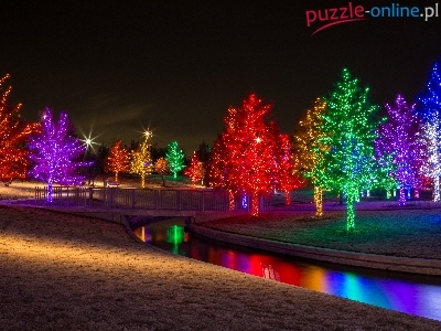 Puzzle Świąteczne, Park, Drzewa, Światła