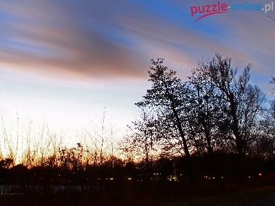 Puzzle Drzewa, Wieczór, Park, Niebo