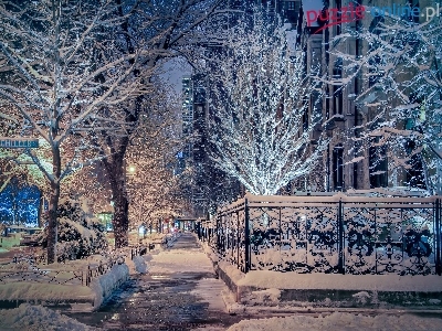 Stany Zjednoczone, Płot, Ośnieżone, Ulica, Śnieg, Chicago, Zima, Drzewa