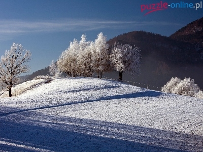 Puzzle Drzewa, Góry, Pola, Zima