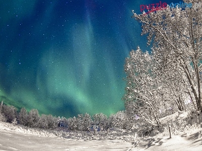 Puzzle Drzewa, Zorza, Polarana, Zima