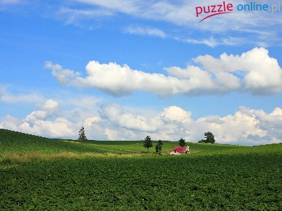 Puzzle Drzewa, Chmury, Pole, Domek