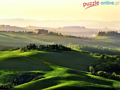Puzzle Drzewa, Wzgórza, Pole, Domy