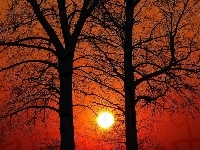 Drzewa, Góry, Pomarańczowe, Rzeka