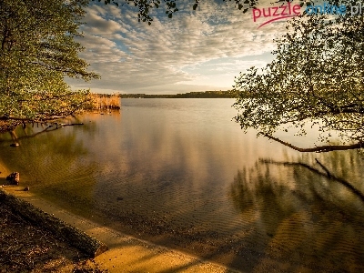Puzzle Drzewa, Jezioro, Poranek, Brzeg