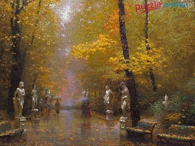 Drzewa, Obraz, Park, PosÄ…gi, Aleja