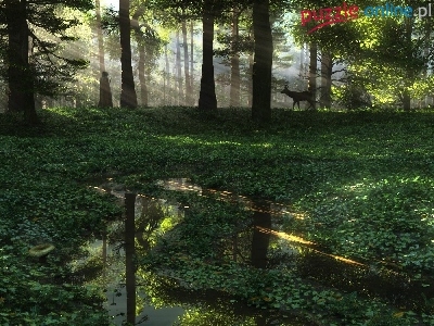 Puzzle Drzewa, Las, Jeleń, Promienie Słońca