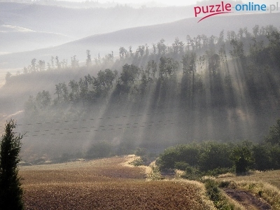Puzzle Drzewa, Droga, Pola, Promienie Słońca
