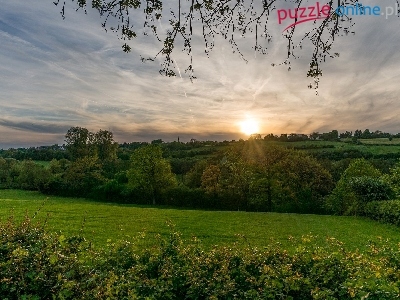 Puzzle Drzewa, Wzgórza, Promienie słońca