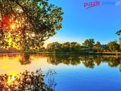 Puzzle Drzewa, Jezioro, Przebijające Światło