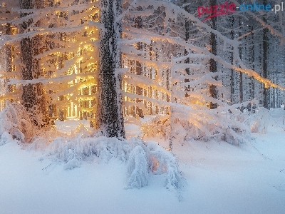Drzewa, Zima, Las, Przebijające światło