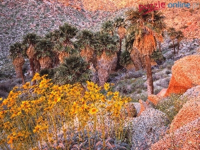 Puzzle Drzewa, Kamienie, Roślinność, Kwiaty