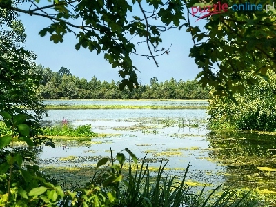Puzzle Drzewa, Jezioro, Rośliny, Lato