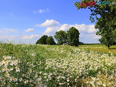 Drzewa, Łąka, Rumianki, Lato