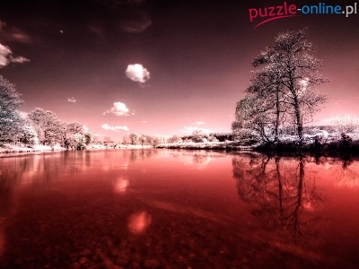 Puzzle Drzewa, Czerwona, Rzeka, Zima