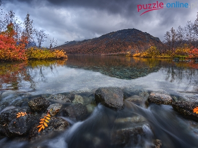 Drzewa, Kamienie, Jesień, Półwysep Kolski, Góry, Rzeka, Rosja, Chibiny