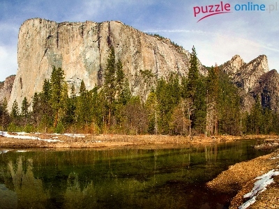 Puzzle Drzewa, Góry, Rzeka, Odbicie