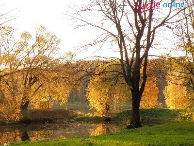 Puzzle Drzewa, Park, Rzeka, Jesień