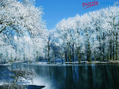 Puzzle Rzeka, Drzewa, Zima